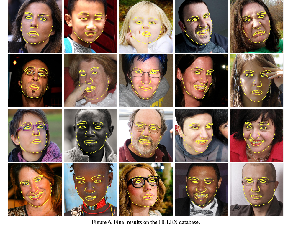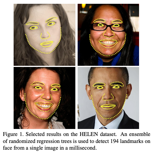 该算法给dlib库中的shape predictor提供了理论基础, 并且在dlib中最终选择使用68个landmark来让上文的级联回归树进行拟合, 在原文中也测试了400, 200, 80, 40, 20 等不同数量的初始形状数量.